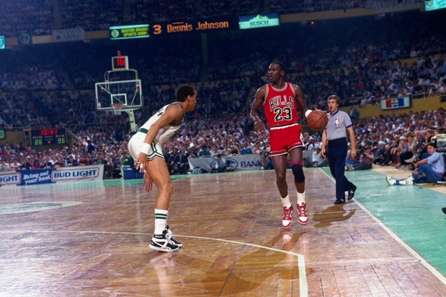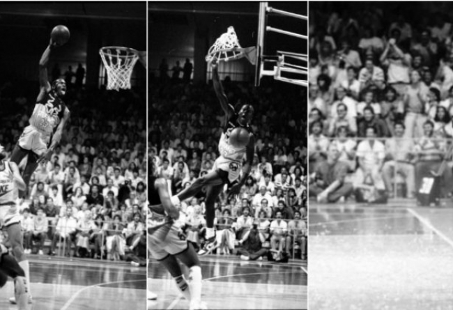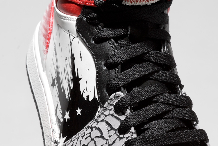 1985 年乔丹在一场意大利举行的邀请赛上,一记远距离起跳的飞身滑翔扣篮,将有机玻璃篮板扣得粉碎,那年也正是 Air Jordan 1 首次面世的元年。这次 Jordan Brand 以扣碎篮板为主题,在 Air Jordan 1 Retro High 鞋身上,呈现出 MJ 当晚身披的球服配色。