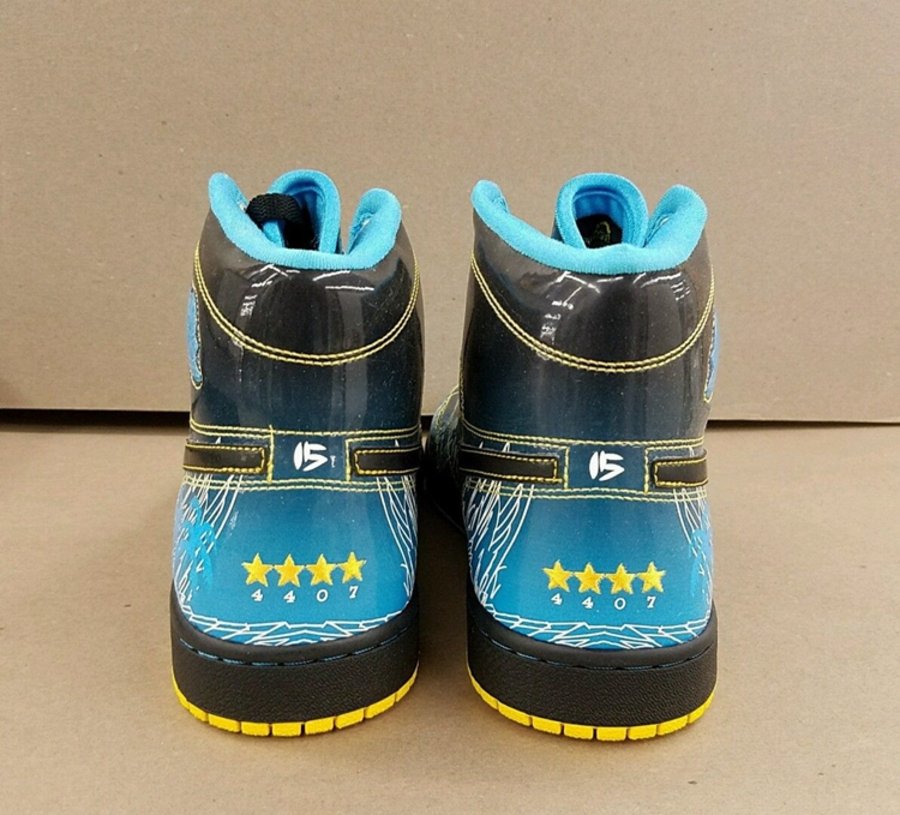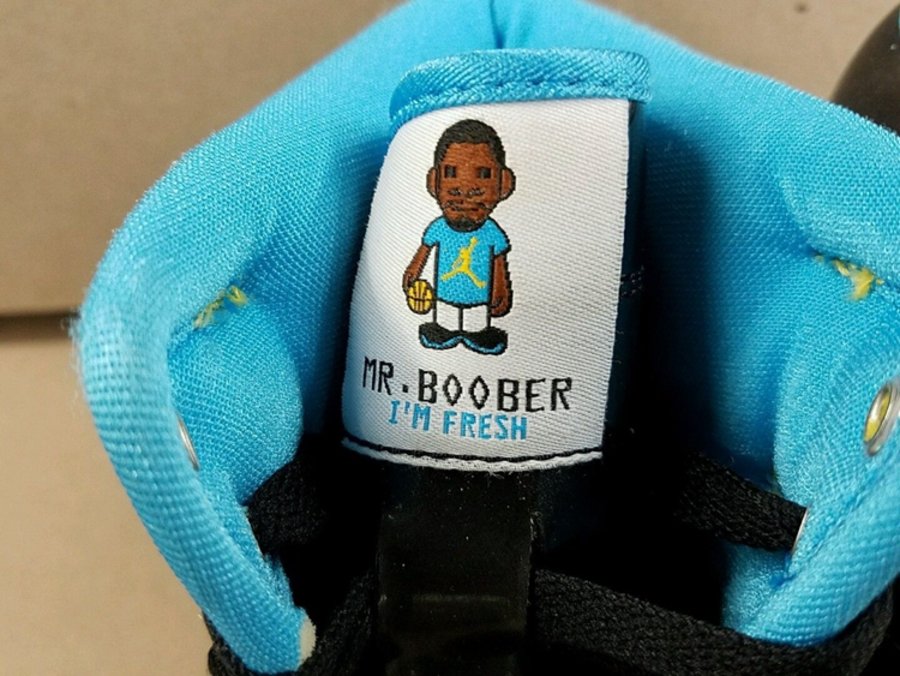 由他亲自设计的鞋身印有棕榈树的图案,背景则由黑色逐渐过渡为蓝色,寓意着 Tony 与病魔斗争的艰辛路程。在鞋舌设计上,则是 Tony 手捧篮球身穿 Jumpman 的卡通形象,并且带有 “I'm Fresh” 的激励口号和他的绰号 “Mr.boober” 。球鞋后跟的数字 “15” 则体现了 Tony 最喜欢的 NBA 球星卡梅隆·安东尼的球衣号码,4407 则代表了他接受肾脏移植的器官编码。