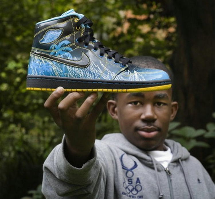 ▽ Tony Taylor Jr 与他亲手设计的 Air Jordan 1 “Doernbecher”