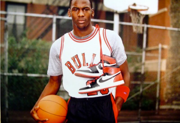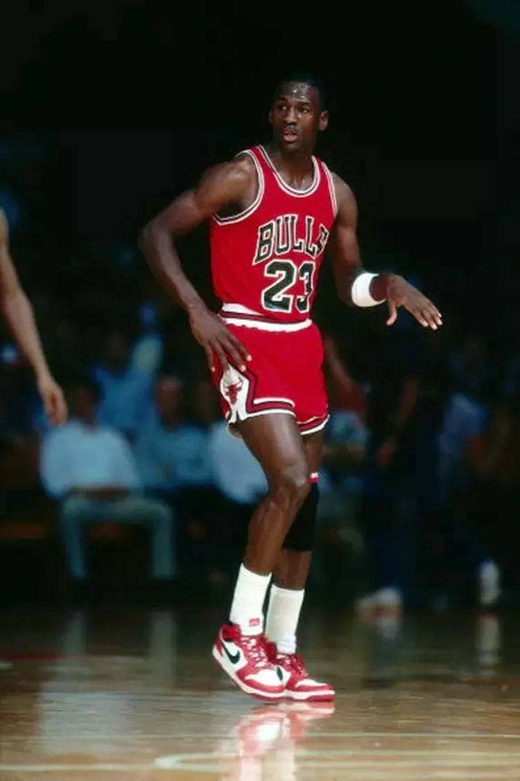 作为 1985 年首发配色成员之一,Air Jordan 1 “Black Toe” 完美承袭了公牛队的配色设计,当年刚刚签约 Nike 的乔丹便身披此鞋拍摄了多款宣传硬照。