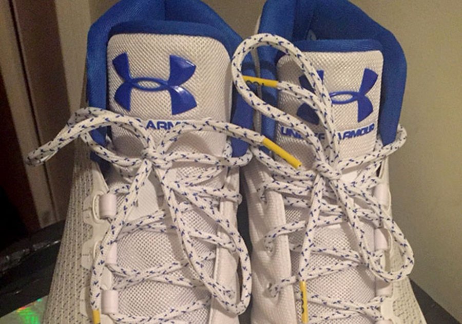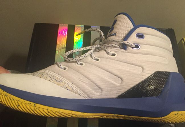 近日曝光的这款 Curry 3 勇士主场配色,采用白色花纹织物鞋面搭配蓝色家族式中底,最后辅以黄色泼墨外底收尾,整体感觉承袭了 UA 一贯的简洁大气,色彩上也与勇士队徽相得益彰。此外,鞋身内侧此番则是首次披露,以工程网面塑造成发散状龙骨的形态呈现,颇具特色。