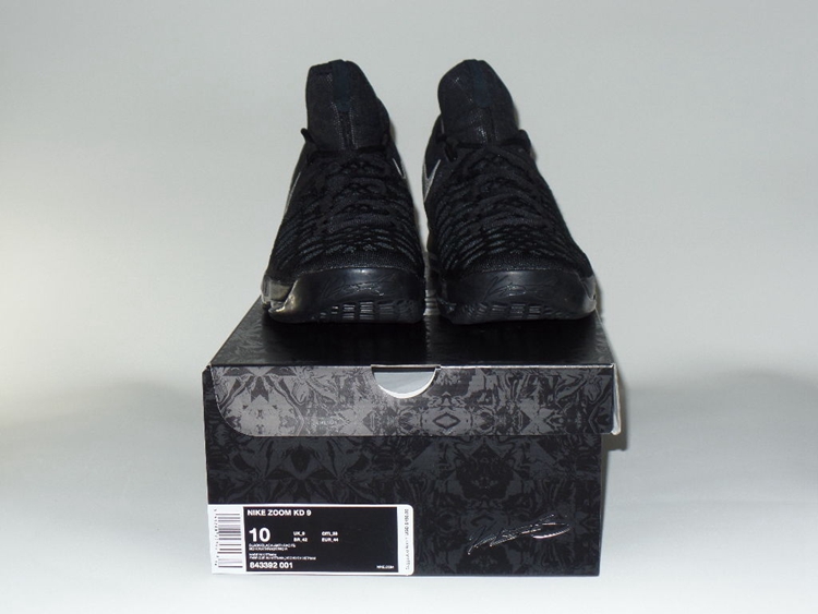 继酷黑 Kobe 11 昨日公布后,Nike Basketball 全新配色系列 “Black Space” 随后释出了第二款 Nike KD 9 的实物近照。