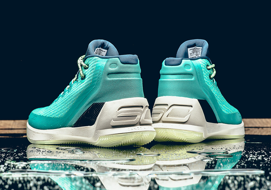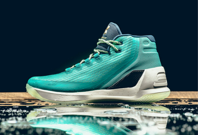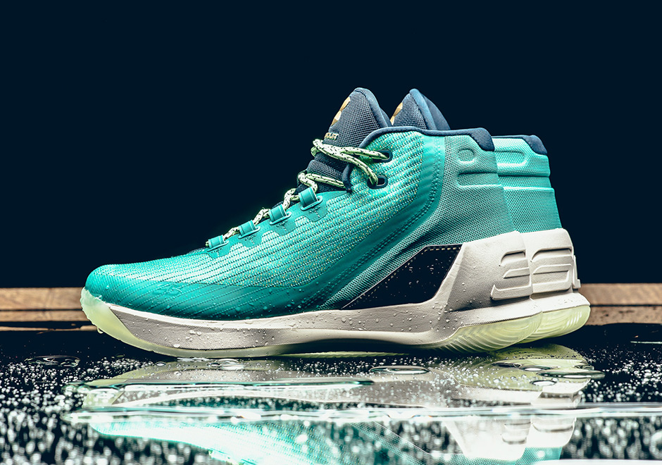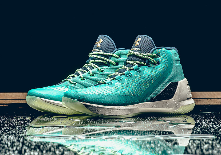 在 2016 年 10 月 28 日 Under Armour 将发售 Curry 3 “Reign Water”。该球鞋以湖蓝色为鞋身,搭配白色中底与水晶外底。发售价格为 $150 美金。
