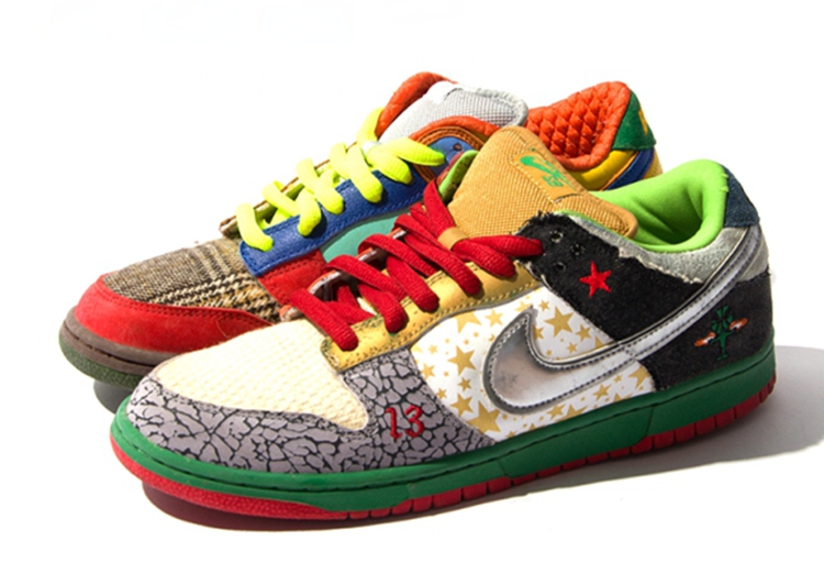 在 Nike Dunk SB 风靡全球的 2002 年,Nike 将旗下 Dunk SB 人气鞋款的经典元素汇集于一身,打造出 “What the” 系列的鼻祖球鞋 Nike SB “What the Dunk”。