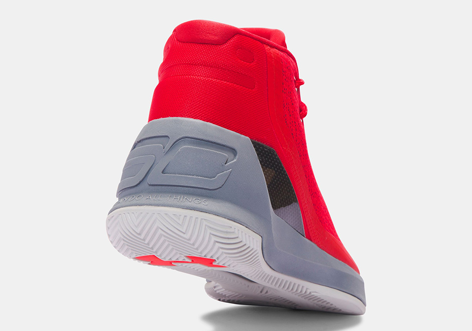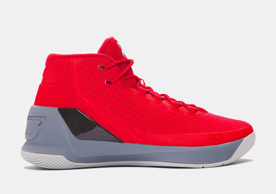 这款 Under Armour Curry 3 以 Curry 的母校 Davidson 学院为灵感,鞋面以红色为主,搭配黑色碳板与银色 Under Armour Swoosh,以深灰色中底与浅灰色外底进行收尾。该款配色极其耀眼,必能成为球场上的吸睛大杀器。