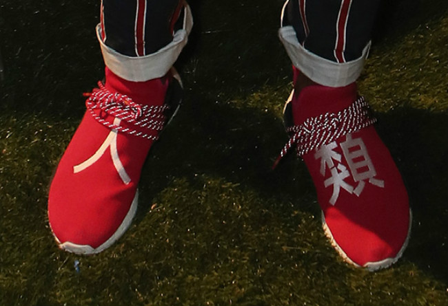在上周 ComplexCon 的展示会中,菲董上脚一双全新未发布的 adidas Originals NMD “Hu” 鞋款。 这款 adidas Originals NMD “Hu” 鞋面以红色 Primeknit 材质打造为主,并绣有白色“人”“类”两字。鞋带采用 3M 反光材质,最后依然用白色鞋底收尾。 目前这款球鞋暂无发售信息,喜欢的朋友不妨期待一下吧。
