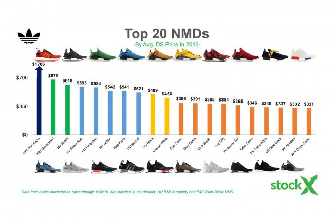 各大明星潮王争相演绎,首发配色曾一度接近万元。纵观 2016 年 NMD 的走势,限量鞋款与大量配色轮番轰炸,鞋型不断推陈出新,从早先的一鞋难求到现在的眼花缭乱,我们不禁要问,到底是套路还是诚意。也许不必纠结于此,为我们提供了更多的选择,这才是 NMD 所带来的好处吧。