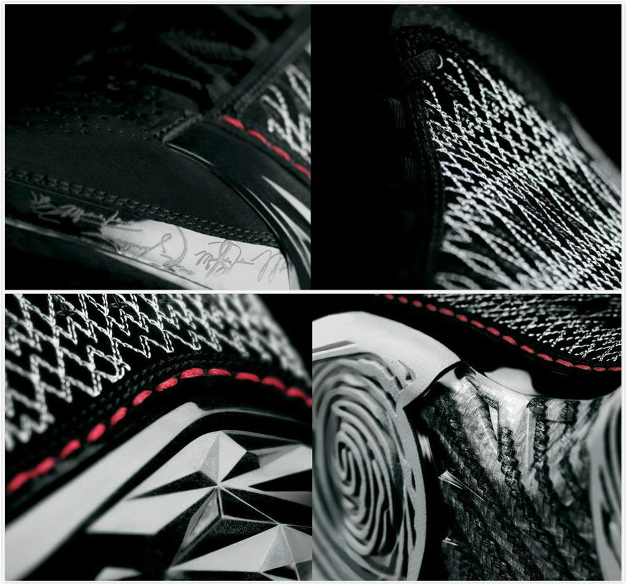采用 Laser (激光镭射技术)将乔丹的职业生涯重要时刻以及 1- 20 代鞋款的闪亮细节化作一个个图腾符号,呈现到鞋身、内衬及鞋底之上,令人眼花缭乱却又回味无穷,以此来致敬飞人那些伟大的传奇瞬间。