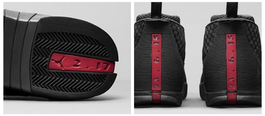 在飞人那铭记史册的最后一投后,乔丹也再次淡出赛场,而 Air Jordan 15 则承担起一份致敬的任务。后跟及鞋底镂空的数字,分别代表 #23 球衣号码,6 NBA 总冠军,Air Jordan 15 代球鞋,鞋底 2.17 则是帮主本人的生日。
