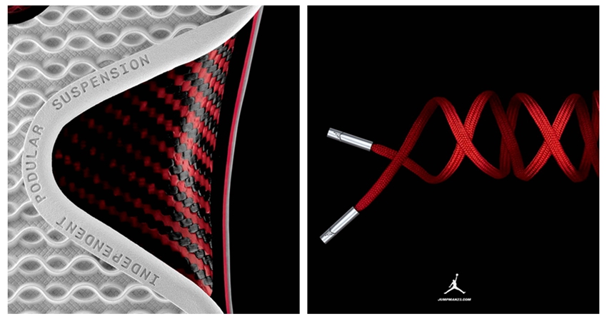 外底代表着 DNA 双螺旋纹路与红色鞋带造型交相呼应,以此来彰显 Air Jordan 独特的专属身份。