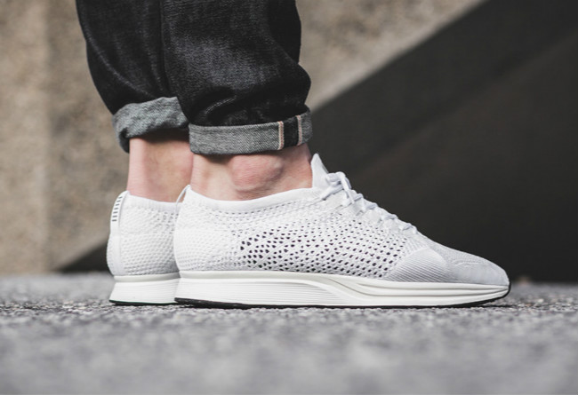 这双名为 Nike Flyknit Racer “Goddess” 从鞋身到鞋底到各项细节都采用了纯白色打造,但通过 Flyknit 的精细编织,鞋身侧边的 Swoosh 依然若隐若现,保留了品牌的经典元素。