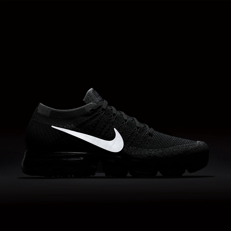 与此前 COMME des GARÇONS 联名版本极为相似,动态飞线及常规鞋带的回归,使其无论在包裹程度还是便利性上都更加符合日常穿着。革命性的 VaporMax 气垫更采用少见的纯黑色呈现,鞋身 Swoosh 以 3M 反光材质打造,保证运动安全的同时,无疑也增添了一分耀眼的时尚气息!