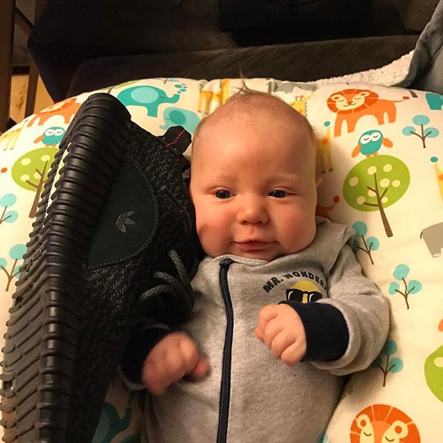 随后又有小宝宝的照片,和 Yeezy 的照片
