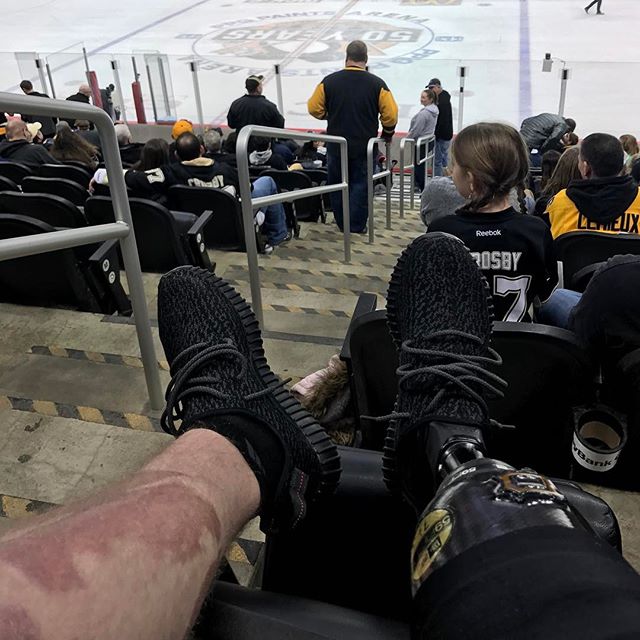 他照样出现在了冰球赛场观众席,整整齐齐的穿着了 Yeezy