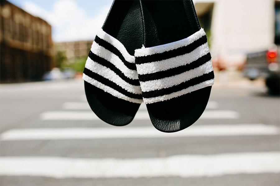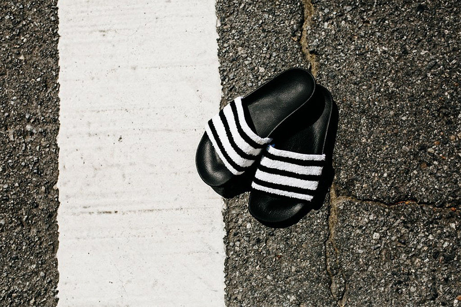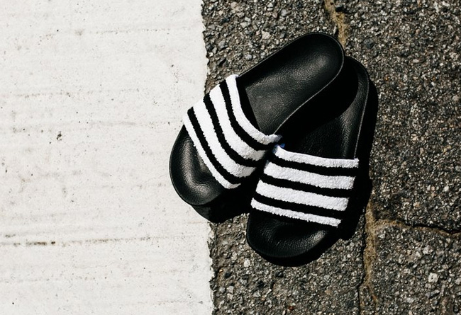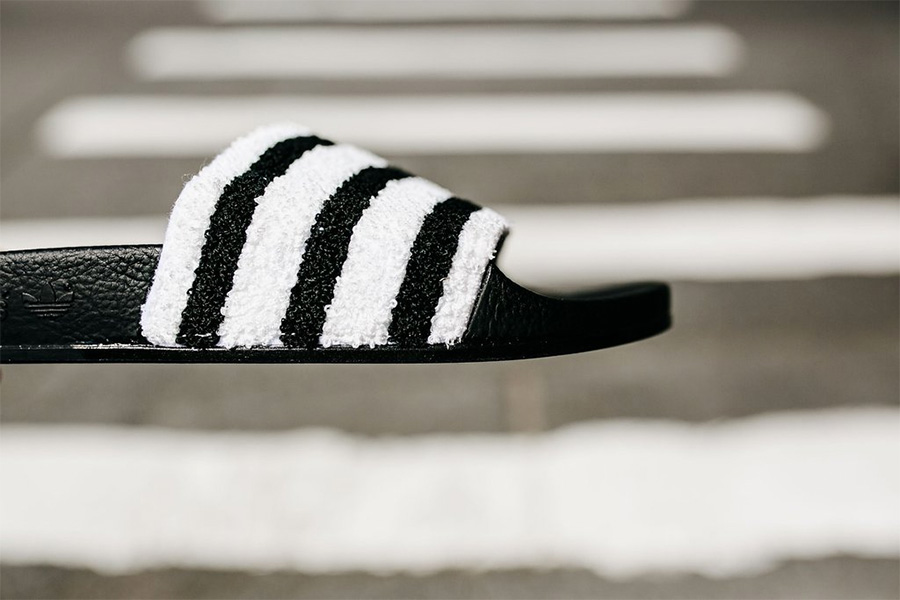 adidas Adilette 系列凉拖一直是人气不凡的简约时尚款式,在今年夏季即将来临之时,这个经典型号也推出了全新产品。 眼前这款 adidas Adilette 依然延续了经典的黑白色调,黑色的橡胶外底耐脏又耐看。而鞋身的宽大绑带则以毛巾材质打造,不仅看起来视觉效果极为独特,想必穿上后也十分的舒适! 速干轻质又舒适柔软,这双 adidas Adilette 恐怕会成为今夏的 “明星”!有兴趣的朋友不妨关注。