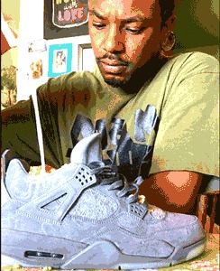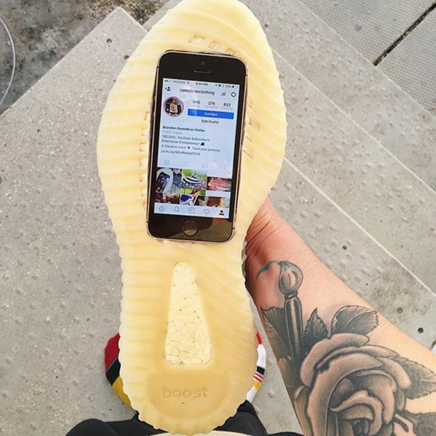 说完小黑哥,接下来我们说说小白哥,这位白人小哥名叫 NameBran,是一名资深球鞋玩家,之前曾因将黑红 Yeezy 350 V2 爆改成滑冰鞋而出名。