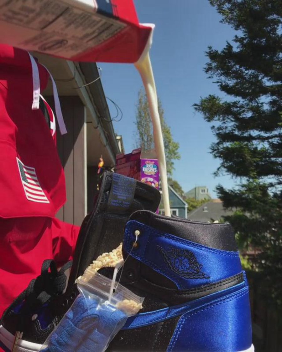 除此之外,全球仅限量 700 双的黑蓝丝绸 Air Jordan 1 以及黑红字 Yeezy 350 V2 也难逃麦片哥之手!