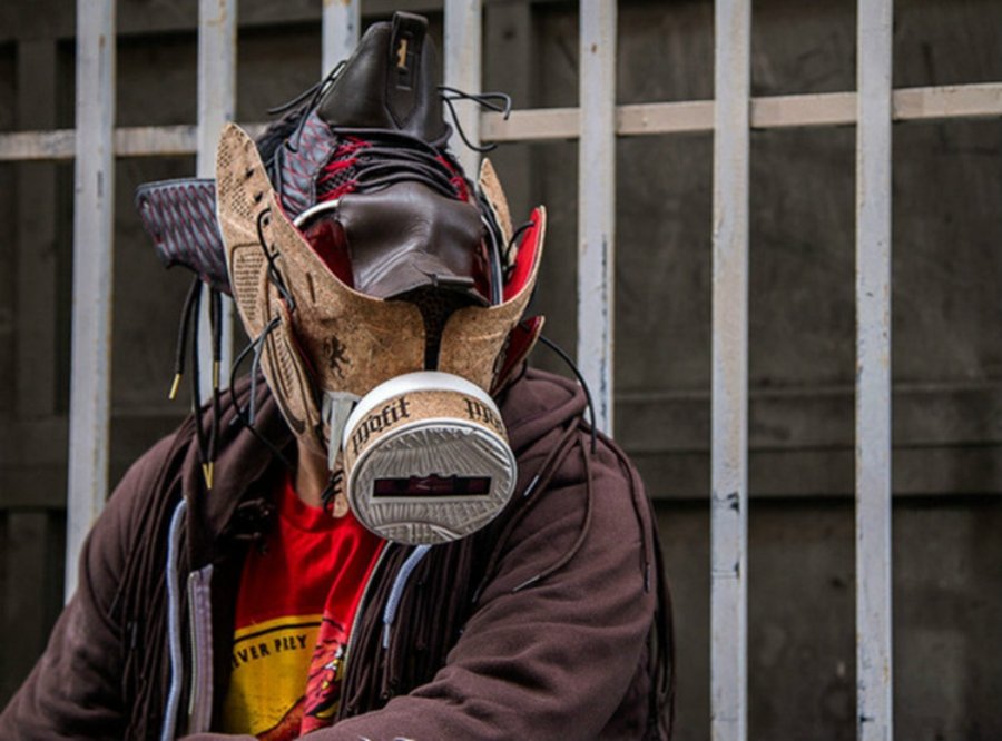 此外,国外还有玩家将球鞋制成了更为生猛的防毒面具,令人大呼帅气的同时,也不得不佩服精湛的手艺!