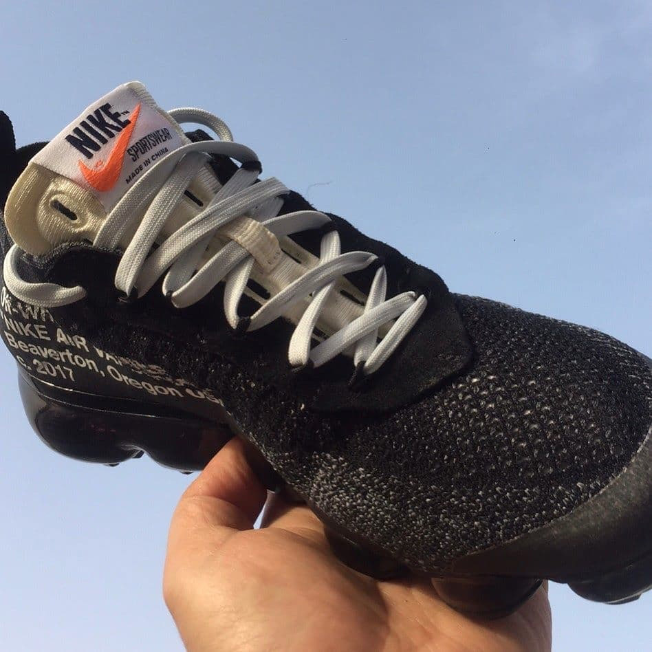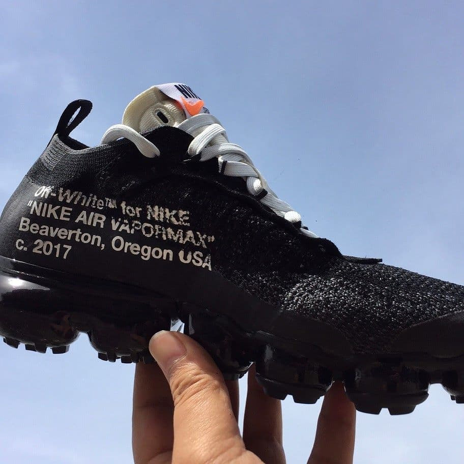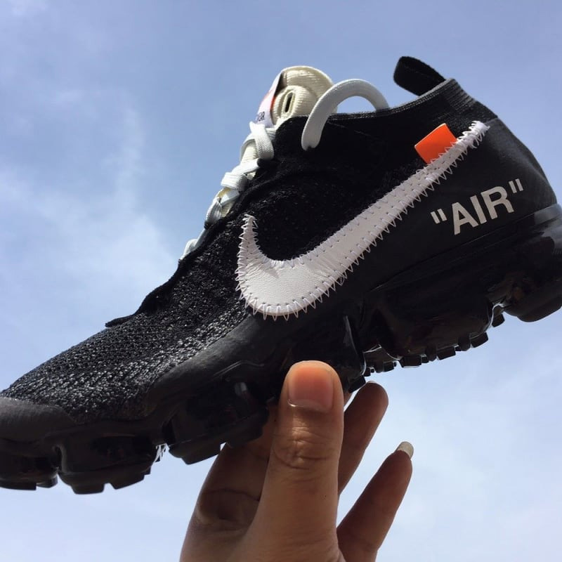 眼前的这双 Off-White x Nike Air VaporMax 10X 则在人气跑鞋基础上以人气非凡的黑色装扮呈现,白色的 Swoosh 以波浪车线装饰,鞋帮上同样有放大的 “AIR” 字样!