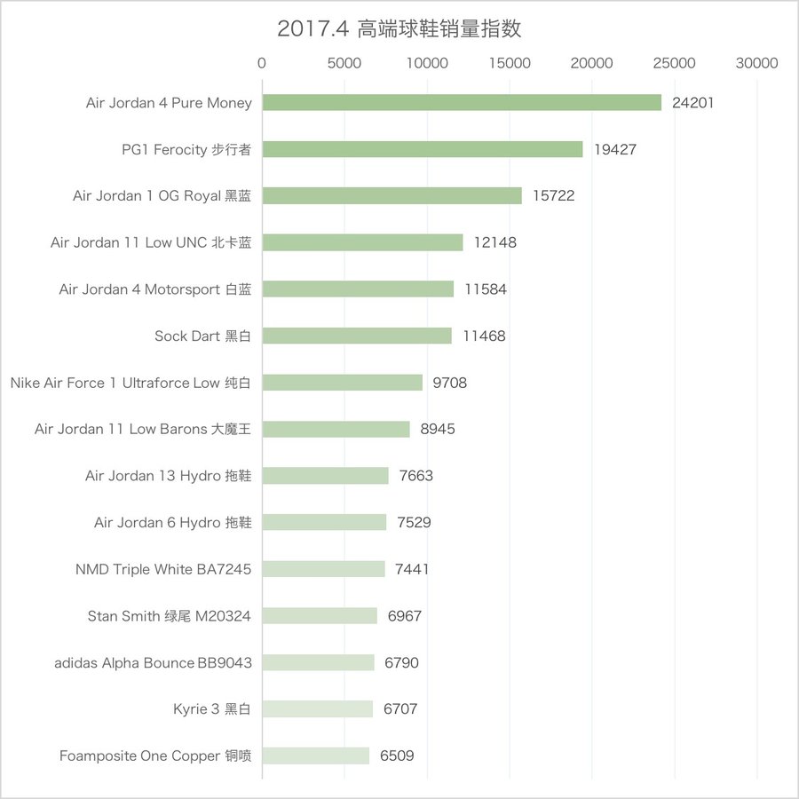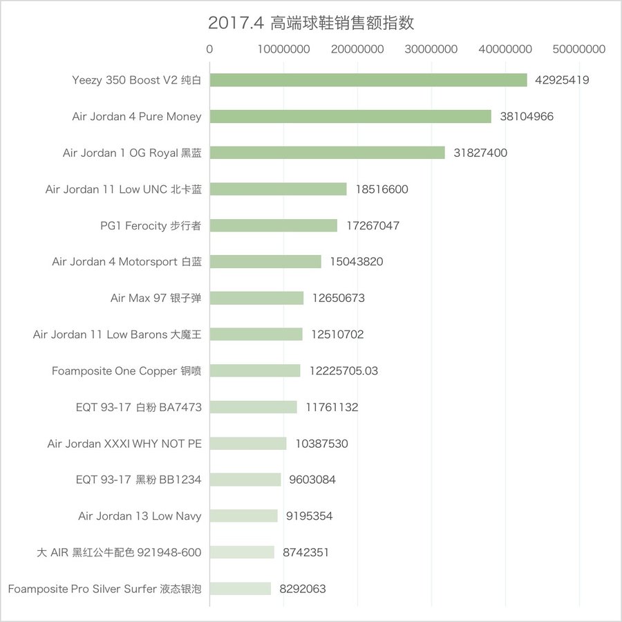 SneakerMarketWatch.com 发布了 4 月份的高端球鞋销量/销售额排名数据,果不其然!白银 Air Jordan 4 Pure Money 和纯白 Yeezy 350 Boost V2 分别占据了销量和销售额的首位!看来当下街头的流行趋势,是小白鞋无疑了!