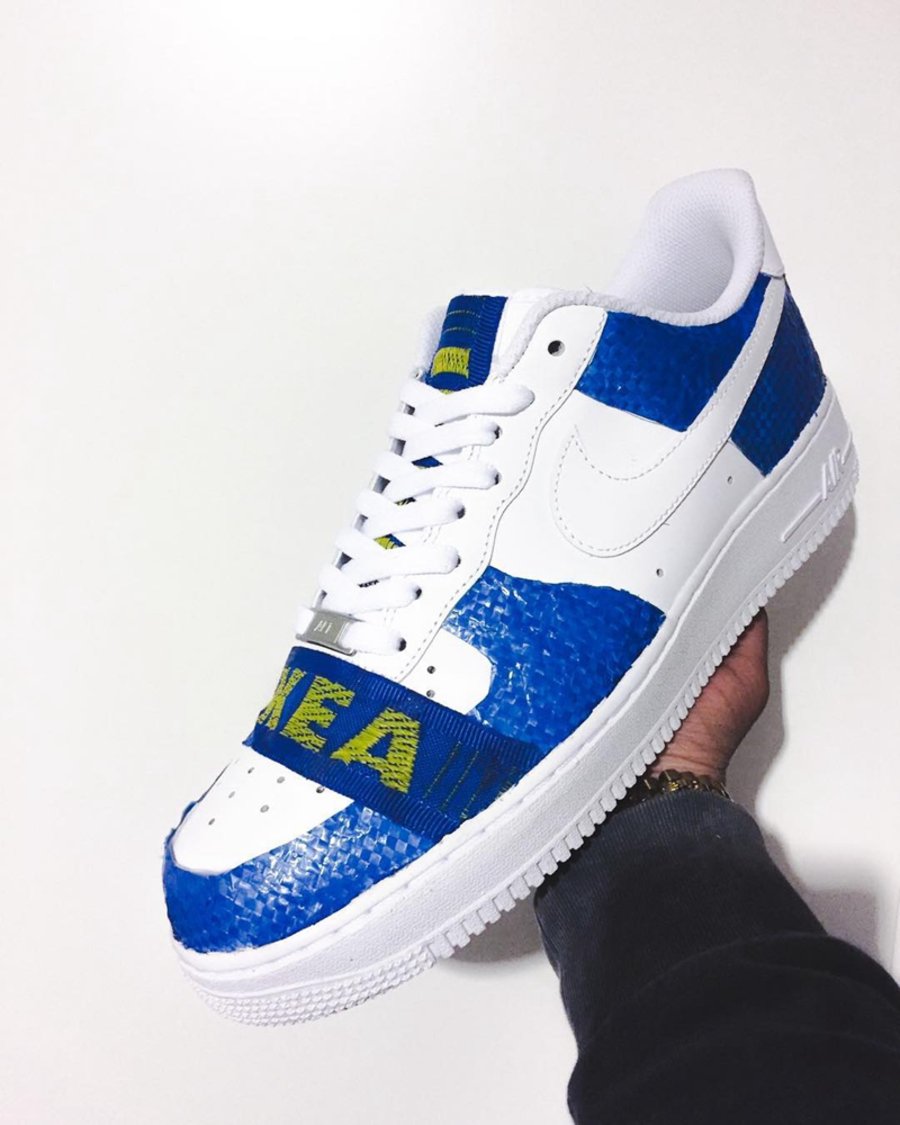 此外,IKEA x Nike Air Force 1 以及 IKEA x adidas Ultra Boost 也纷纷出现,蓝黄色编织袋元素与白色鞋身的搭配,竟毫无违和感,IKEA 既视感满满!