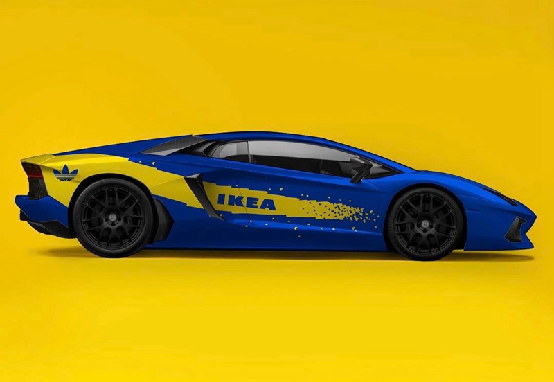 更有 IKEA x Lamborghini 车款概念图片释出,并于车尾加入 adidas 三叶草标志,趣味十足!