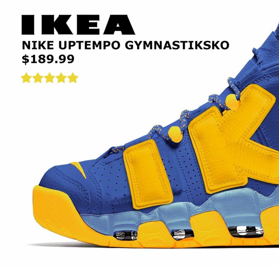 除了 Yeezy 350 Boost V2 之外,更有一款 IKEA x Nike Air More Uptempo 概念图片释出,将原本的大 “AIR” 字样改为 “IKEA” 呈现,整体造型颇为独特!