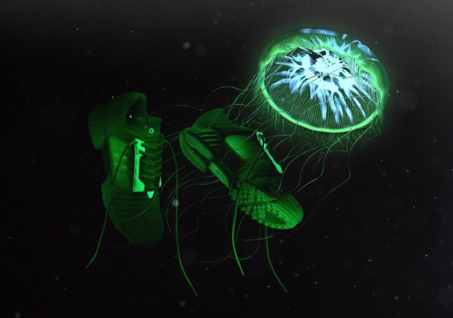 选择世界上最致命的箱型水母为设计灵感,在纯白 Primeknit 针织鞋面之中,注入荧光材质,在黑暗的环境中散发出水母般的耀眼光芒,极具玩味气质!