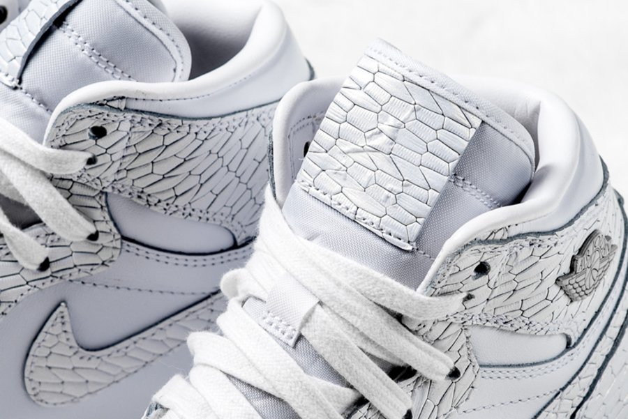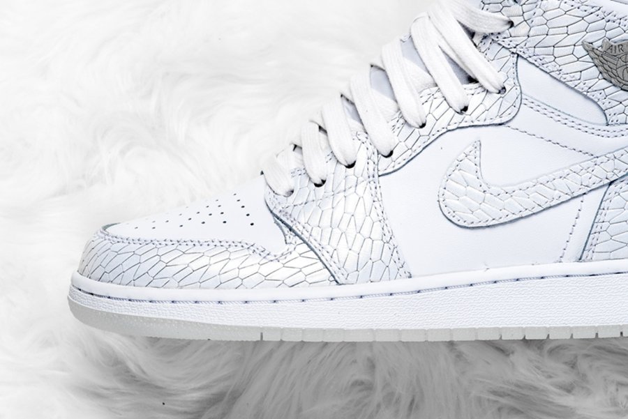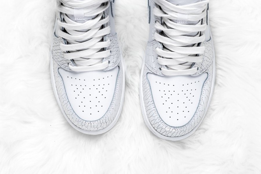 均以清新淡雅的纯白色调贯穿鞋身,采用近似蟒蛇皮的爆裂纹理示人,隐约散发珠光色彩,细节处辅以优质皮革呈现,营造出高规格的质感表现。最后搭载白色中底及半透明水晶外底,整体造型颇为独特,远观夺目,近赏又精致非凡,着实让人心动!