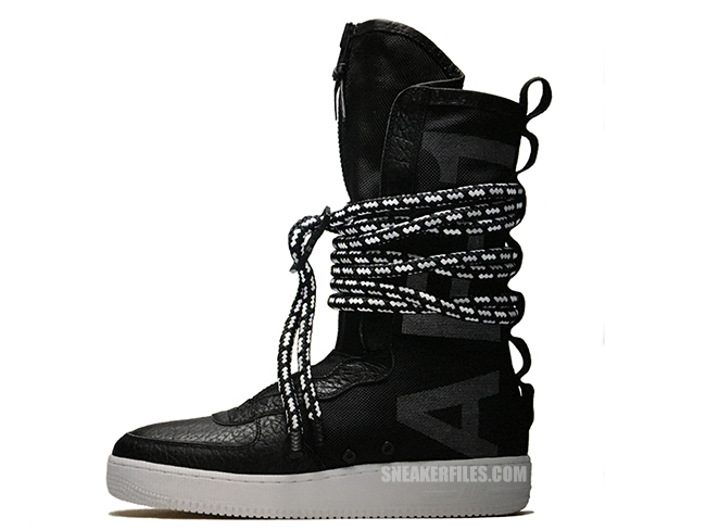 拥有超高人气的 Nike Special Field Air Force 1 除了推出了高帮版本与中帮版本外,还曝光出 SF Air Force 1 的 2.0 超高帮版本! 这款 SF AF1 2.0 鞋身依旧采用皮革拼接抗撕裂尼龙打造而成,鞋身去除了鞋带改为鞋面拉锁式设计,标志性的脚踝绑带也改为超粗鞋绳设计,而超高的鞋帮上印有 AF1 字样! 传闻这款超高帮设计的 SF AF1 2.0 将于 2017 年冬季进行发售,你对这样的设计是否满意呢?