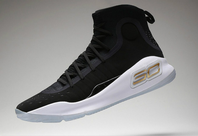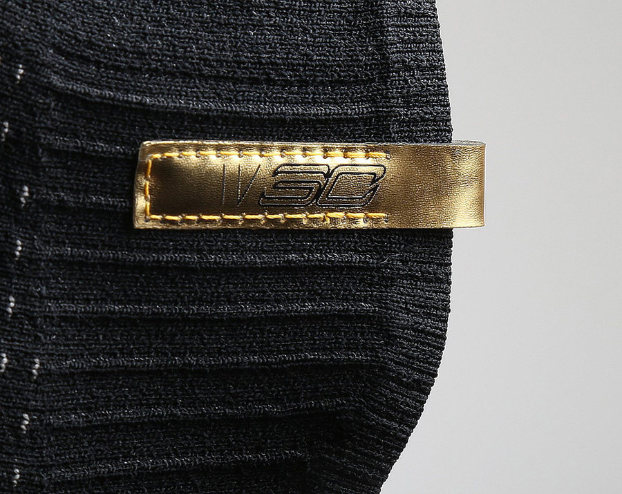 而 Slamonline 今日发布了 Under Armour Curry 4 “Black” 的细节图片,这双客场配色的 Under Armour Curry 4 与主场白金配色相反,鞋身以低调的黑色为主色调,中底依旧运用了白色进行渲染, SC Logo 也有金色进行点缀,UA Logo 则采用黑色花纹设计,最后以淡蓝色水晶底进行收尾。此次采用全新的剪裁设计,并融合了全新皮质材料以及袜套编织设计,看起来给人一种轻软舒适的感觉!