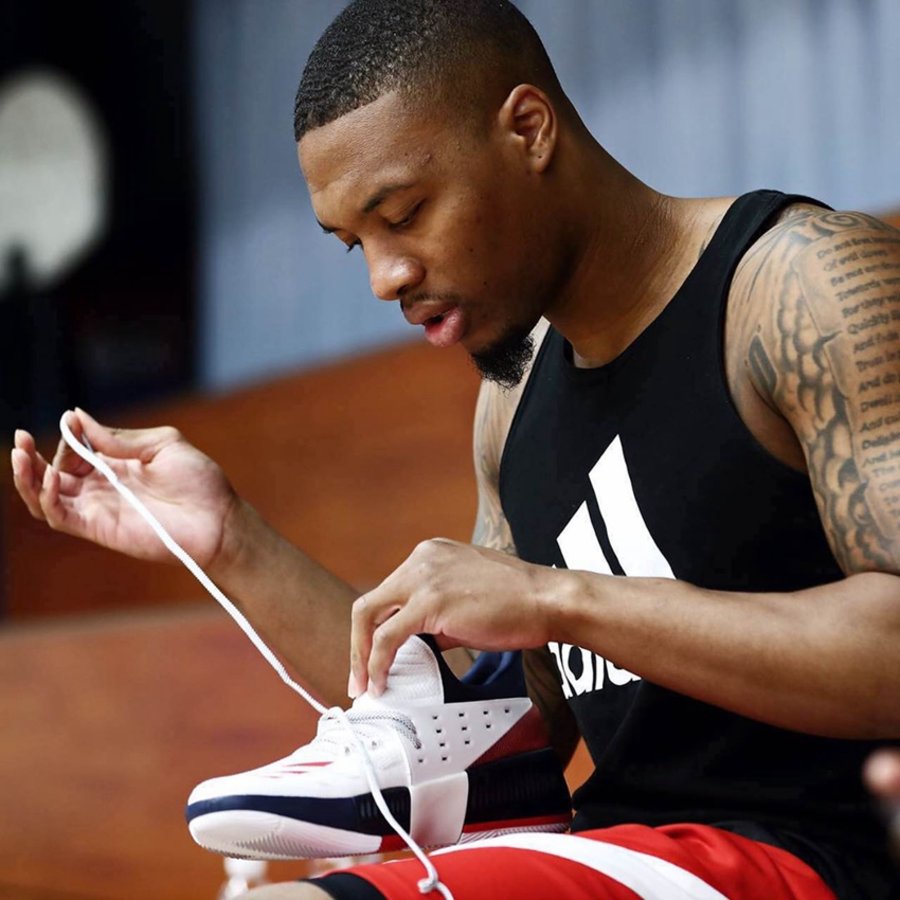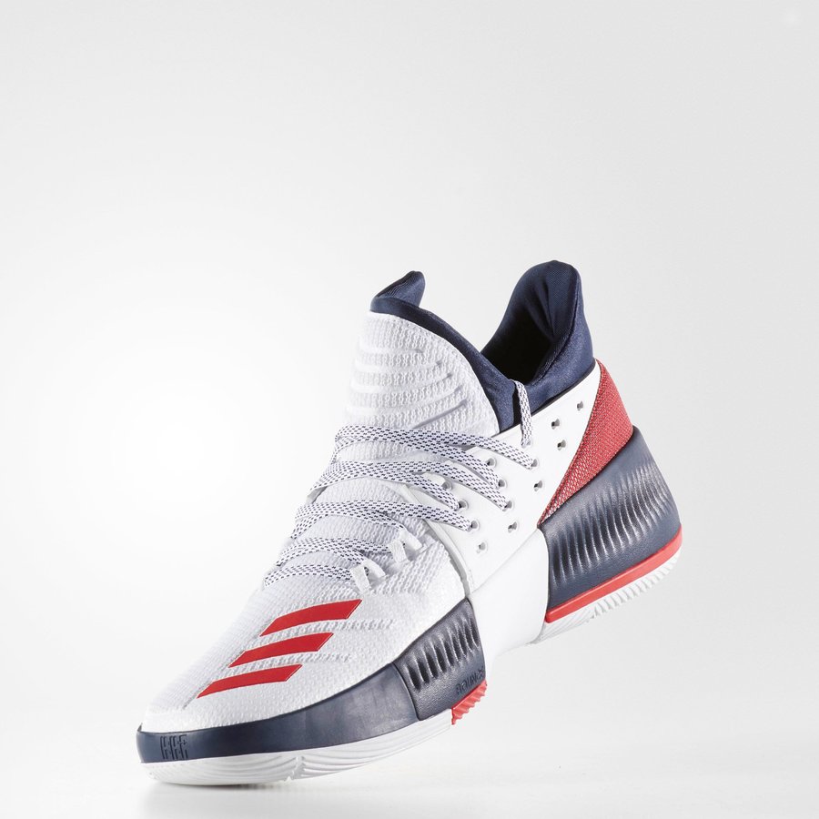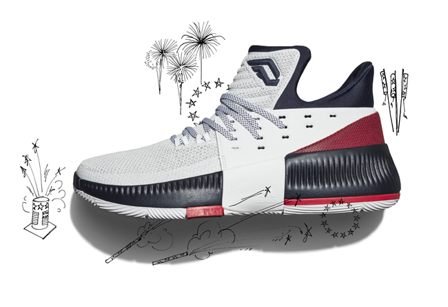 为庆祝美国独立日(7 月 4 日)的来临,adidas 为利拉德打造了一款红白蓝三色 Dame 3 新品战靴,并以此纪念他和家人一起观赏烟火的时光。