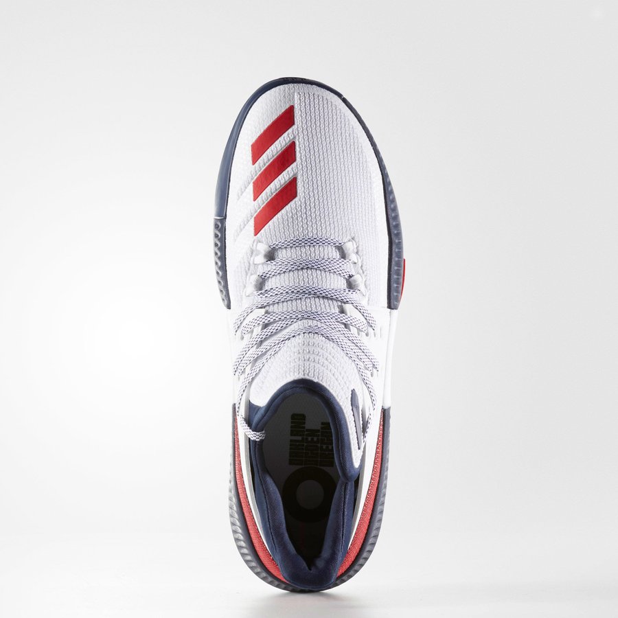 鞋身采用白色无缝工程网面搭配可调式侧翼构成,提升包裹的同时更带来舒适的穿着感受。利拉德专属 Logo 同内衬及中底采用蓝色呈现,与后跟红色稳定片向呼应,营造出 USA 经典三色直击主题!