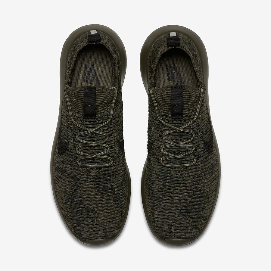 此次发售的 “Camo” 配色,鞋身以暗色军绿迷彩 Flyknit 打造,鞋身一体式的袜套设计,鞋带使用飞线连接,搭配黑色 Swoosh 和军绿色大底,后跟辅以 3M 反光细节,整体感觉十分硬朗,喜爱军事风穿搭的潮人不容错过。