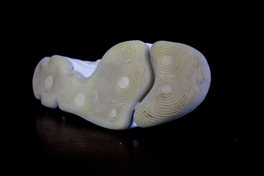 随着雨水天气增多,小编也穿着 KD 10 淋过雨踩过水,因为沾水会加速氧化,所以鞋底有明显的发黄!