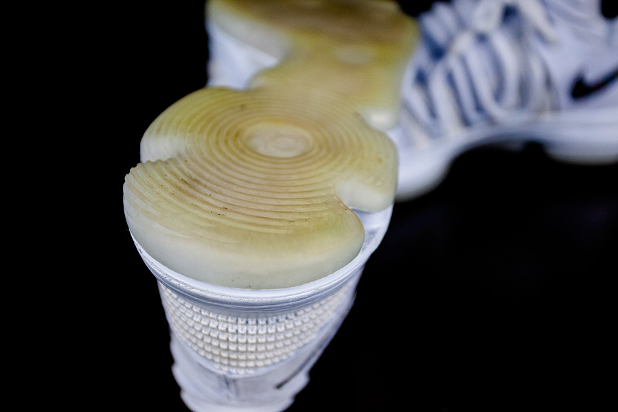 外层刷漆的全掌 Zoom Air 气垫,经过全新的调试,厚实的后跟不仅减缓脚冲击力,还带来强劲的回弹力。