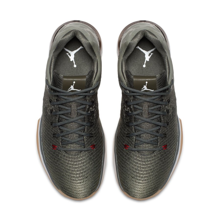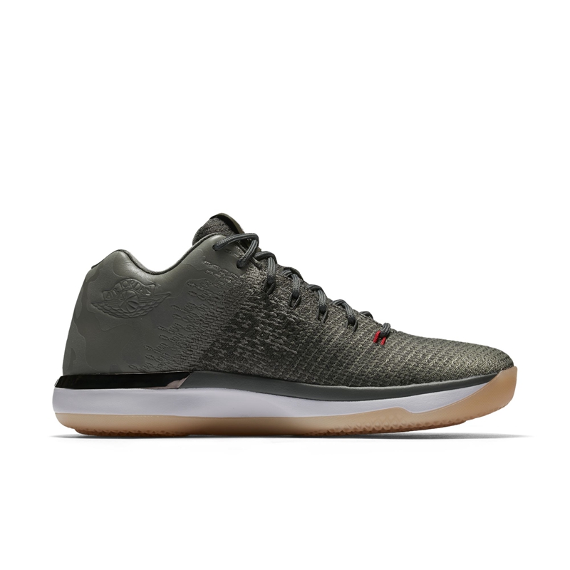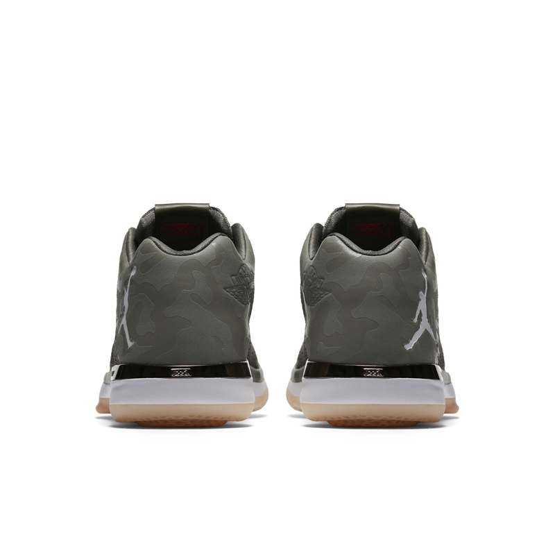 整体采用橄榄绿迷彩搭配生胶大底呈现,浓郁的军事风范营造出强烈的战斗气息,白色中底与鞋帮 Jumpman Logo 相呼应,在迷彩的映衬下点缀高亮细节。