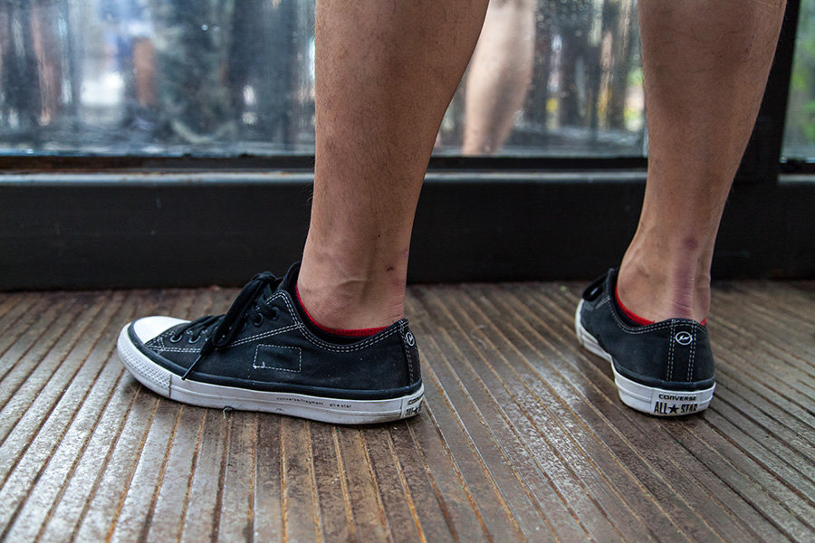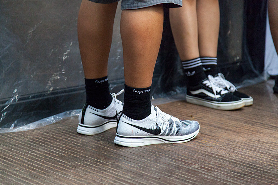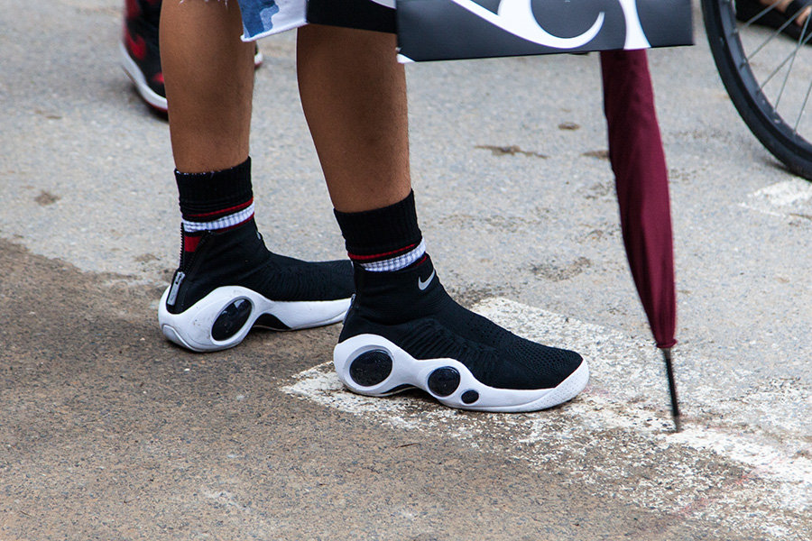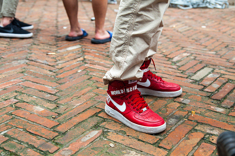 虽然天下着雨,但人气不减,带来现场的球鞋上脚精选,看看各位潮流人士都有怎样的雨天球鞋装扮吧!