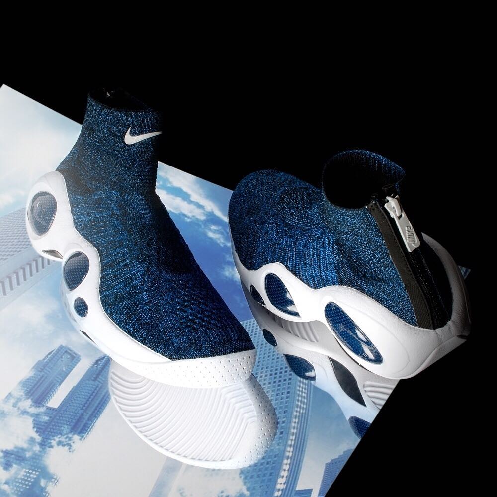将复古与前卫相结合,Flyknit 编织鞋面加上袜套鞋领以及后跟拉链,将 “大眼睛” 的吸睛火力提升到一个新的境界。