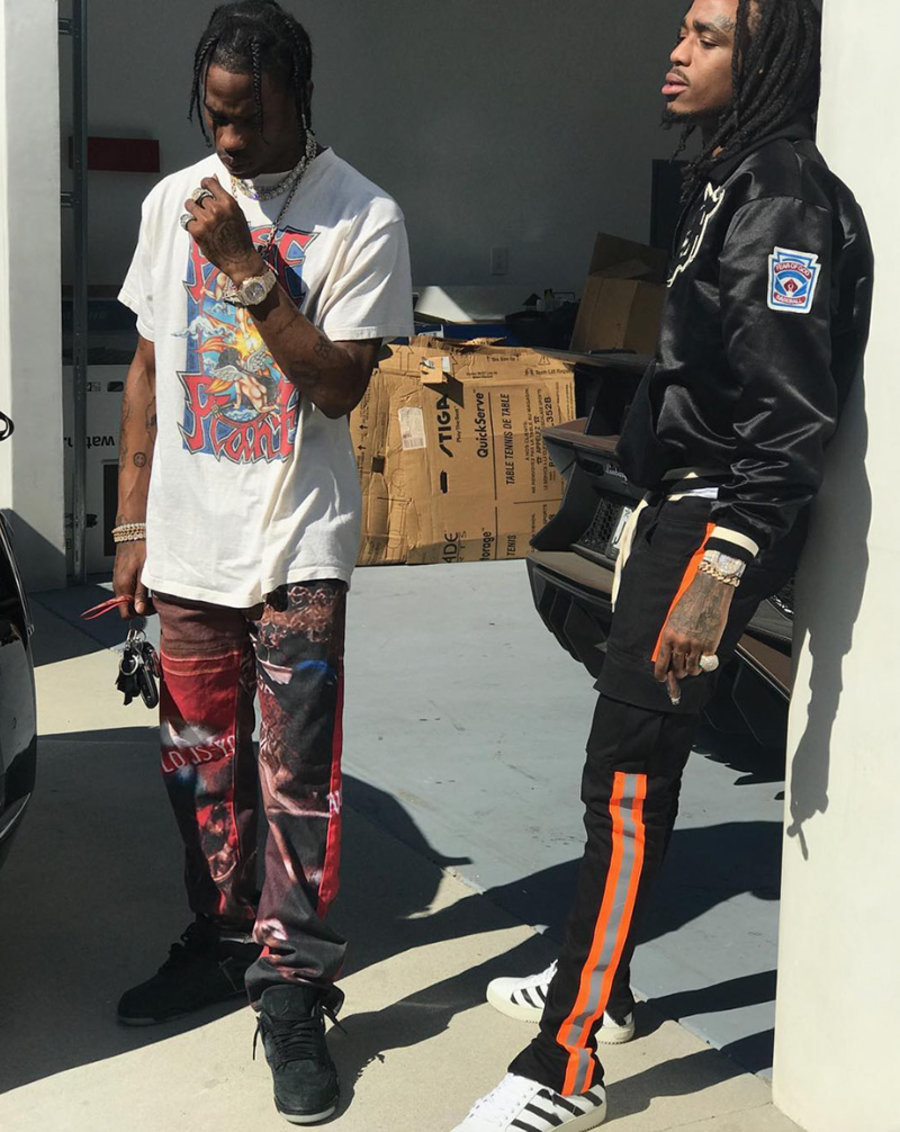 Travis Scott – Kaws x Air Jordan 4 “Friends and Family” & Quavo – Off-White Diagonal Stripe Sneakers