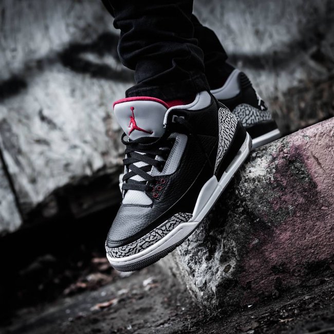 Air Jordan 3 “Black Cement” 为 OG 元年配色的黑水泥装扮,不仅展现了爆裂纹的经典和夺目,黑色作为基调,也是各路潮人和明星大咖们的出街首选!