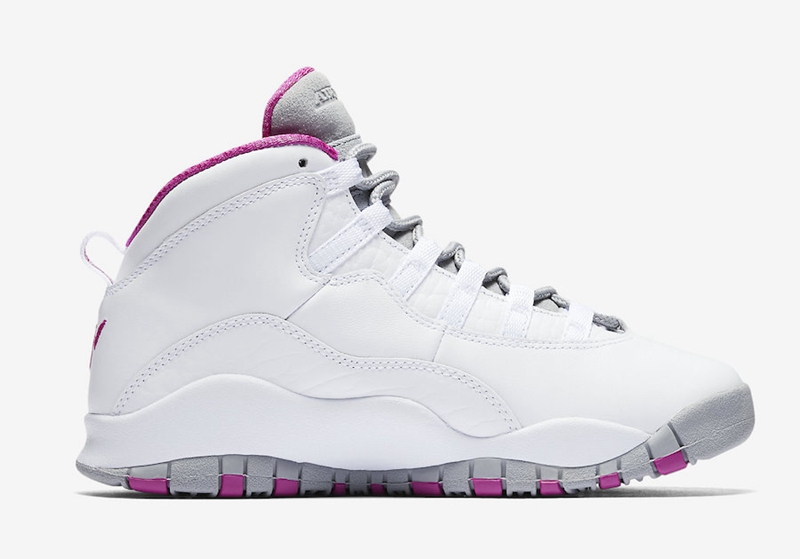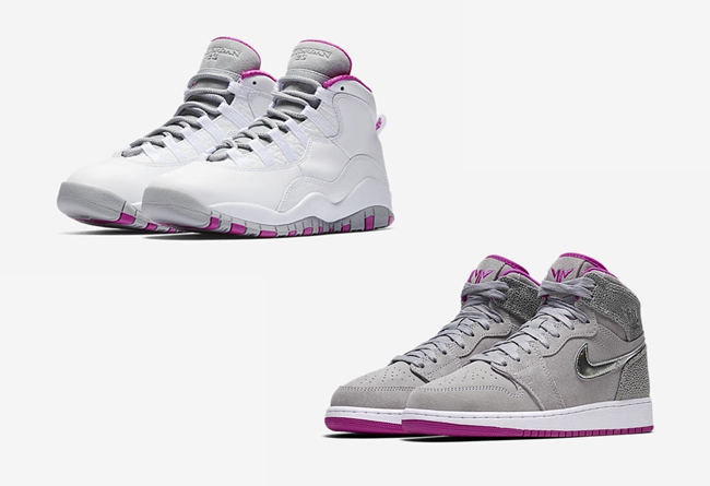 此番分别以经典鞋型 Air Jordan 1 及 Air Jordan 10 为蓝本,整体造型以清新淡雅的白色为主基调,辅以玫红及酷灰装扮点缀,后跟处加入刺绣 Logo 彰显身份,散发出别具一格的个性气质!