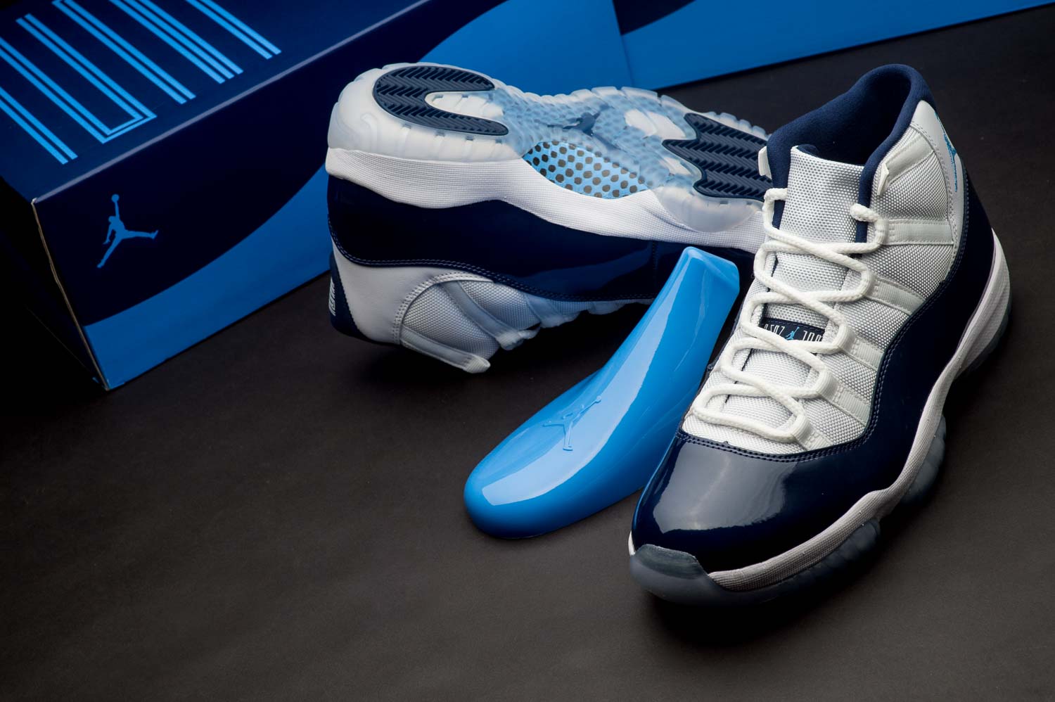 Air Jordan 11 “UNC” 采用了传统的标志性抽屉鞋盒,鞋身以深浅双色搭配,运动活力十足,上脚则有漆皮的光泽闪耀,又注入了浓厚的时尚气质。