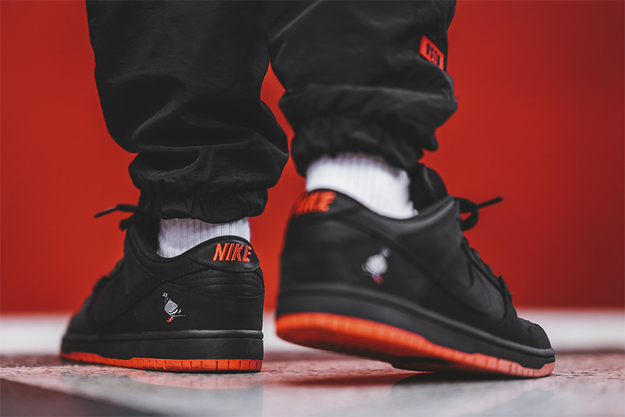 Pigeon 同 Nike Dunk SB Low 的经典联名,一直是球鞋圈的天价款式,本次以全新的黑装呈现,红色外底的托衬带来黑红的热情似火! 这双 Nike SB Dunk Low TRD QS “Pigeon” 于今日在 Nike 官网和线下店铺发售,人气火爆! 带来上脚实拍美图,再度感受这一份独特的街头气质! Nike SB Dunk Low TRD QS “Pigeon” 货号:883232-008 发售日期:11 月 11 日