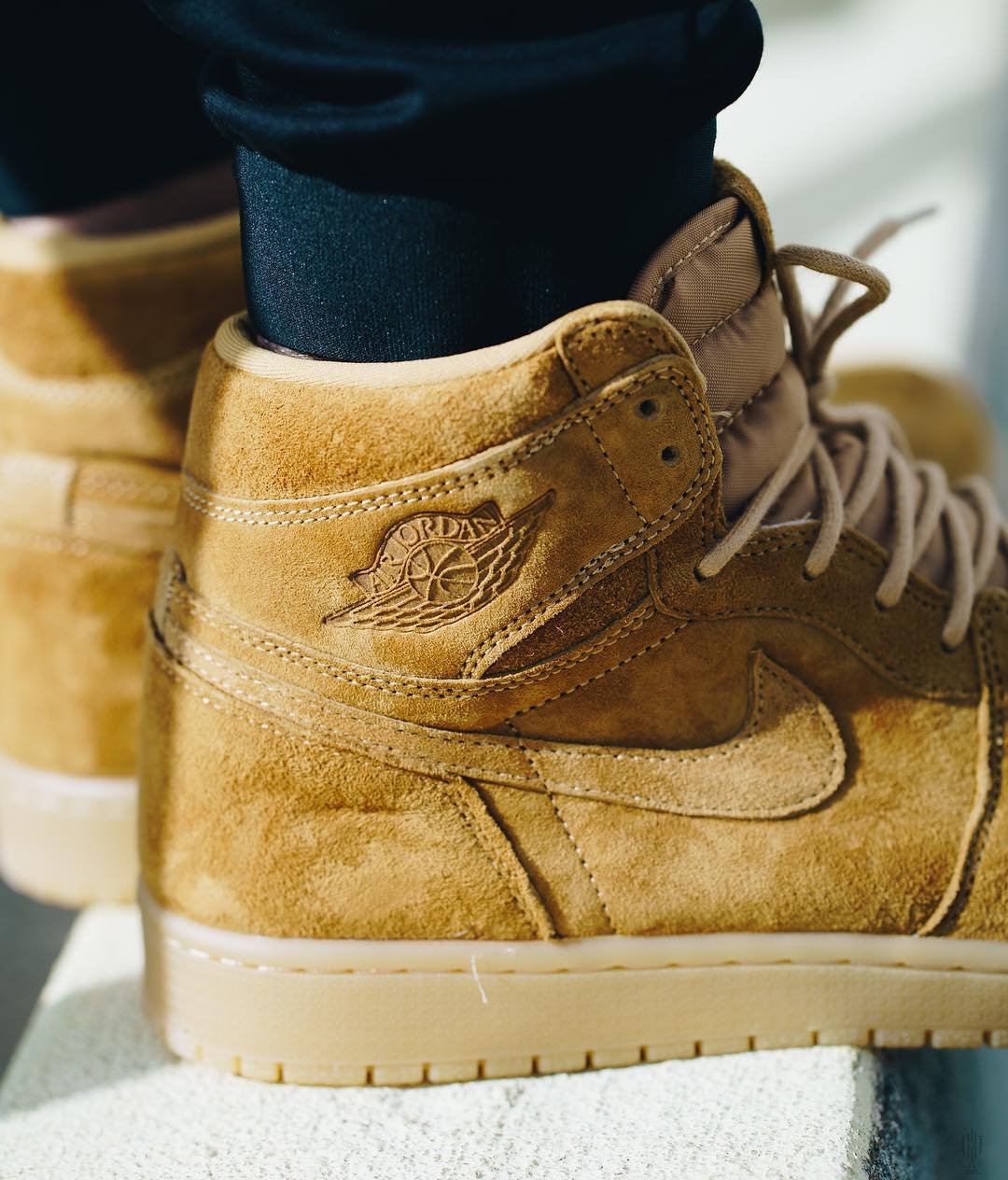 而 Wheat 小麦配色的登陆,为 Air Jordan 1 注入了更多的干练帅气!在生胶外底的托衬下,不仅有着大黄靴的既视感,牛巴革皮革材质更是质感细腻。