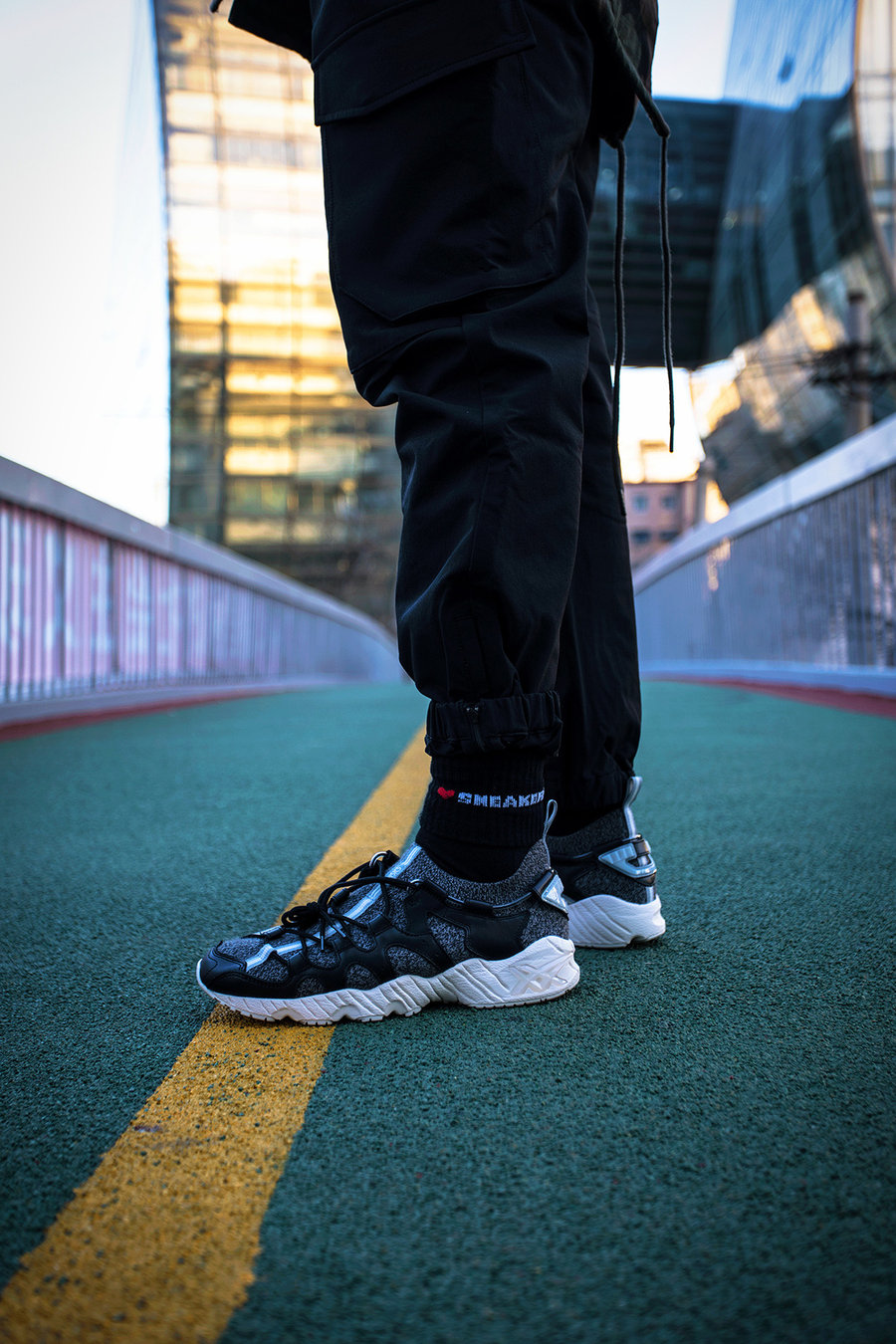 容易撞鞋怎么办?袜子和裤装的穿搭就格外重要了,建议选择视觉效果有点独特的袜子,裤子选黑色肯定不会错!