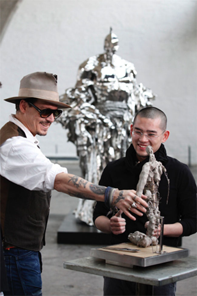 他的作品不仅在国内受到知名人士的争相收藏,连国际知名影星约翰尼·德普也对其作品偏爱有加,甚至来到中国后特意拜访并共同制作了一尊雕像。