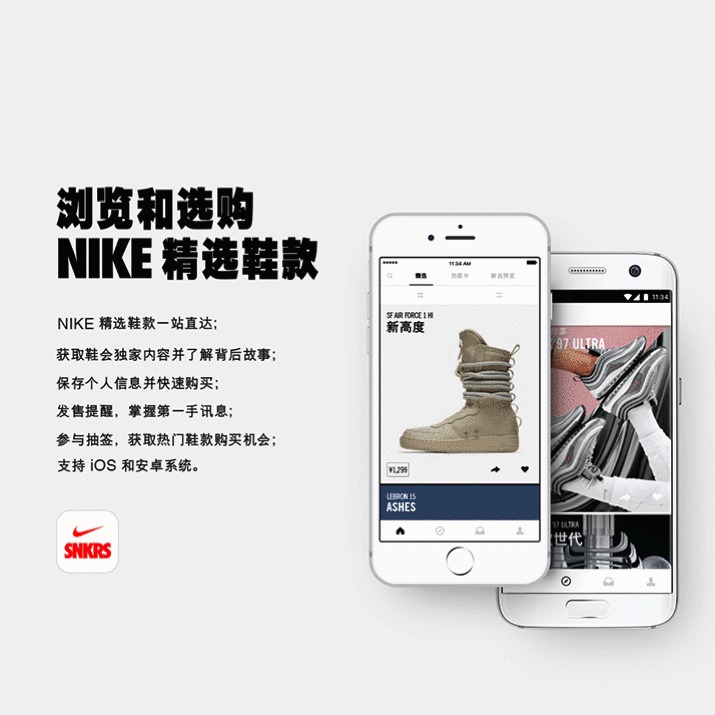 作为集 Nike 产品预订发售、内容信息发布、活动报名登记于一身的手机应用程序,以后除了 Nike.com 官网外,SNKRS APP 同样是官方发售的一大重要渠道。甚至有些限量球鞋仅在 APP 上抢购,如果你还没有在手里安装这个软件,那可要抓紧啦!