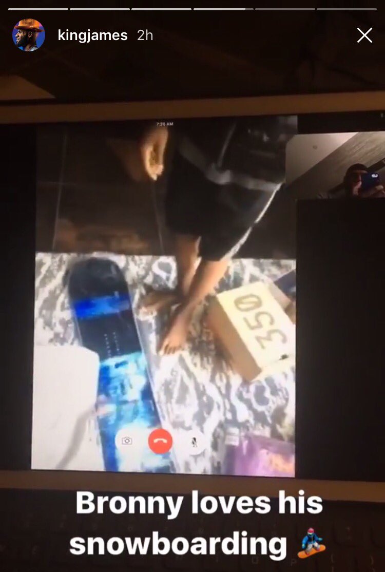 在今天骑士做客迎战金州勇士之前,詹姆斯在 ins 上分享了儿子 Bronny 拆圣诞礼物的视频。镜头中除了滑雪板外,一个明晃晃的 adidas Yeezy 350 鞋盒出现在镜头之中,引得国外网友热议。