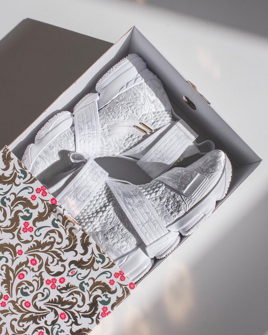 Ronnie Fieg 同詹皇新一代战靴的合作,将艺术气质注入到实战篮球鞋之中,带来了让人叹为观止的精彩跨界。 在洛杉矶全明星周末即将开启之时,一款全新的纯白配色 KITH x LeBron 15 “City of Angels” 曝光。 同样精妙纹理呈现的鞋盒之中,呈现了一款绑带加持的 LeBron 15,纯净的白色装扮,但鞋面的精致纹理依然清晰可见。 传言将在全明星周末登陆 LA,有兴趣的朋友不妨关注。